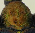 5* | Augen berührend. Halsschild spärlich punktiert und im Mitteleindruck ganz oder teilweise gerunzelt. Meist matt grün oder dunkelblau. 3,5-4,0 mm. An Quercus und Carpinus. Ganz Japan, Kurilen. → Euops konoi , ナラルリオトシブミ |
